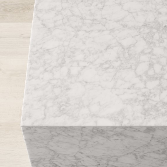 - Crafted of lacquered, grey-veined white Carrara marble slabs on a durable wood frame.