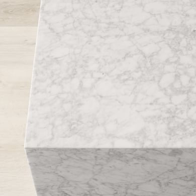 - Features large planes of rich, white Carrara marble with natural texture and shading.