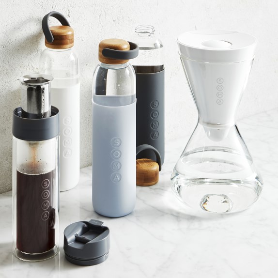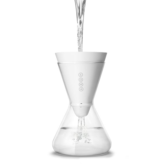 This item is No Longer AvailableSOMA combines sustainable practices with cutting-edge designs, resulting in products that are as pleasing to the eye as they are beneficial to the planet. Made of shatter-resistant glass, this carafe comes with a filter that protects water from chlorine, mercury, zinc, cadmium and copper while eliminating unpleasant tastes and odours.