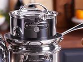 We teamed up with the stainless-steel cookware innovators at Napa Valley-based Hestan to create our signature Thermo-Clad™ Stainless-Steel collection. Our Thermo-Clad cookware is crafted in Italy with an exclusive aluminum-alloy core that provides up to 35% better thermal conductivity than other aluminum clad-metal cookware on the market. This tall sauté pan with mesh basket is perfect for deep-frying foods as well as blanching vegetables, simmering soups and cooking pasta.