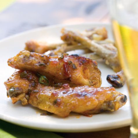 Sriracha Chicken Wings with Cilantro-Green Onion Dip
