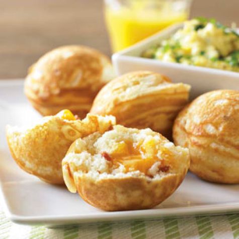 These savory filled pancakes are a snap to prepare using our ebelskiver pancake mix. Serve with scrambled eggs for a delicious breakfast or brunch.