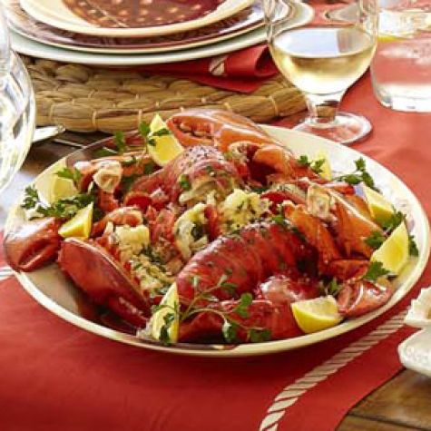 Transfer the lobster tails and claws to a large platter and serve immediately with the remaining herb butter on the side. Serves 4.