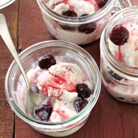 Keeping the pits in the cherries gives the preserves a subtle almond flavor and eliminates an arduous task. Just remember to warn diners about the pits before they savor the preserve (or, if you prefer, pit the cherries). Spoon the preserves over ice cream for a winter dessert.