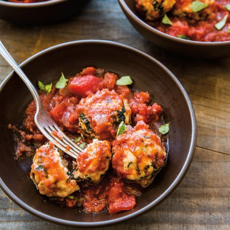 Ladle the sauce into shallow bowls and top with 3 or 4 meatballs. Garnish with the basil and serve immediately. Serves 4 to 6.