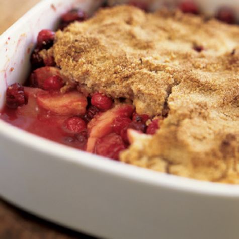 Bake the crisp for 10 minutes. Reduce the heat to 375°F and continue to bake until the fruit is bubbly around the edges of the crust and the crust is nicely browned, 35 to 40 minutes more. Transfer to a wire rack and let cool to lukewarm. Scoop the crisp from the dish onto dessert plates and serve. Serves 8.