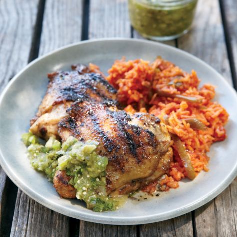 Cumin-Crusted Chicken Thighs with Grilled Tomatillo Salsa