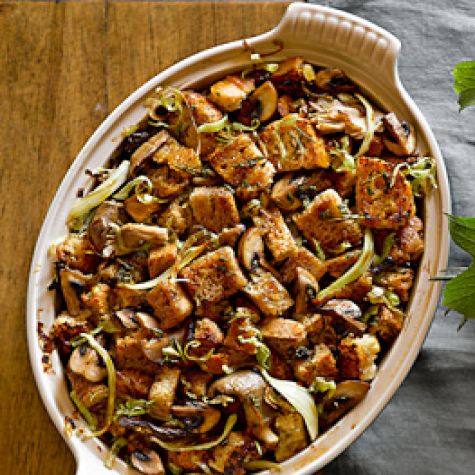 This gluten-free stuffing makes a great vegetarian side dish for your Thanksgiving feast. It’s prepared with our focaccia stuffing mix, crafted by a bakery that is dedicated to gluten-free baking. To amp up the flavor, we add both fresh and dried mushrooms, along with fennel and leeks.