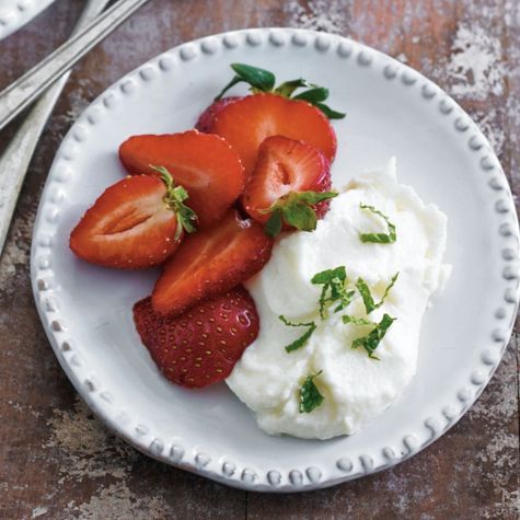 When award-winning cookbook author Georgeanne Brennan lived in France, she made and sold goat cheese, which she appreciates for its flavor and versatility, as it can be used in any course from appetizer to dessert. In this recipe she whips some cream into goat cheese to create the perfect dessert for late spring and early summer, when both strawberries and mint are abundant at the farmers’ market.