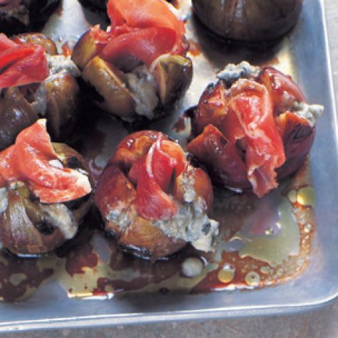 Assertive gorgonzola cheese is a sophisticated counterpoint to naturally sweet fresh figs, which gain a smoky undertone when cooked on an outdoor grill. Salty prosciutto and tart-sweet balsamic vinegar add more intriguing layers to this easy-to-assemble starter, which is best eaten with a knife and fork.