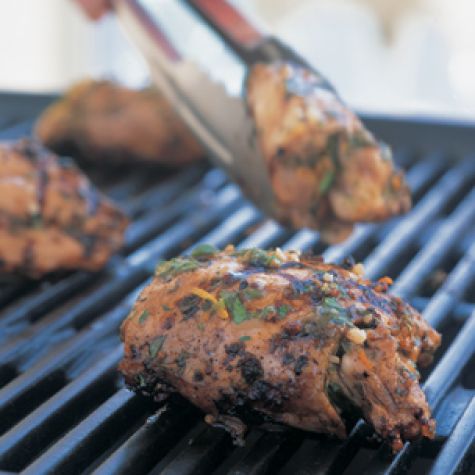 Remove the chicken from the marinade, discarding the marinade. Place the chicken on the grill rack, or put on a baking sheet and place under the broiler. Cook, turning once, until opaque throughout, 10 to 14 minutes total. Divide the chicken among 4 plates, sprinkle with the remaining 2 Tbs. parsley and serve immediately. Serves 4.