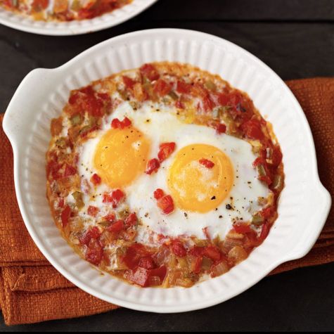 In this simple Cuban classic, baked eggs are nestled in a thick, savory sauce of peppers and tomatoes, topped with butter and a heady drizzle of sherry. The dish can be made and served in one pan or in individual baking dishes. Perfect for brunch, this recipe is easily doubled or tripled for a large group and can be prepared in advance.