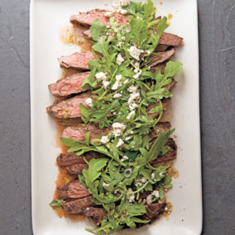Marinated Flank Steak with Lemony Arugula and Feta Salad