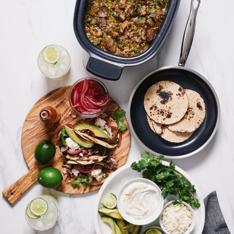 Slow-Cooker Green Chile and Tomatillo Pork Shoulder with Quick-Pickled Onions