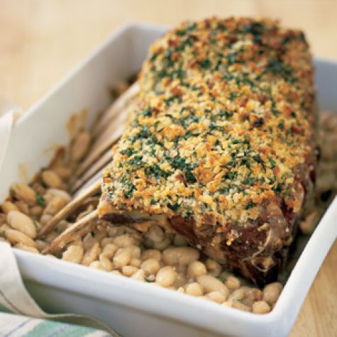 Bread Crumb-Crusted Rack of Lamb with White Beans
