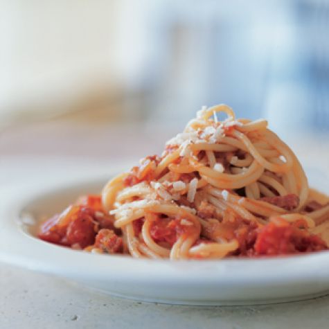 Spaghetti with Collard Greens, Hazelnuts and Caramelized Onions