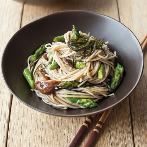 Soba Noodles with Asparagus, Shiitake and Wakame
