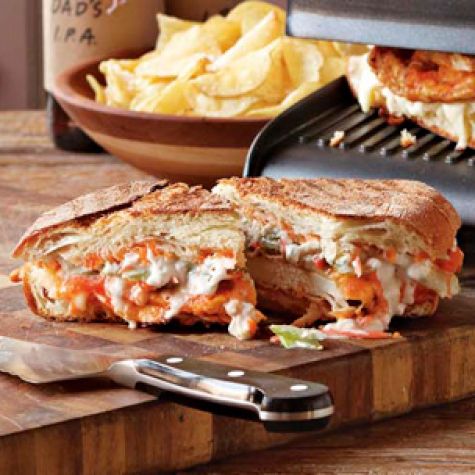 Buffalo Chicken Panini with Blue Cheese-Celery Slaw