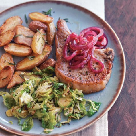 Panfried Pork Chops with Pickled Red Onions and Thyme