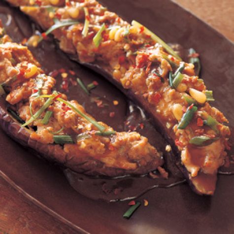 Asian Eggplant Stuffed with Spicy Minced Chicken
