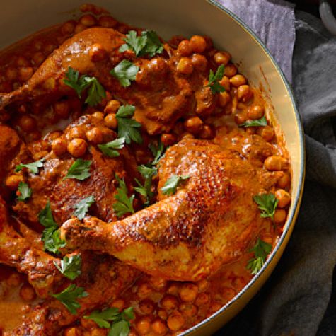 Chicken Braised with Sautéed Kale, Chickpeas and Tomatoes