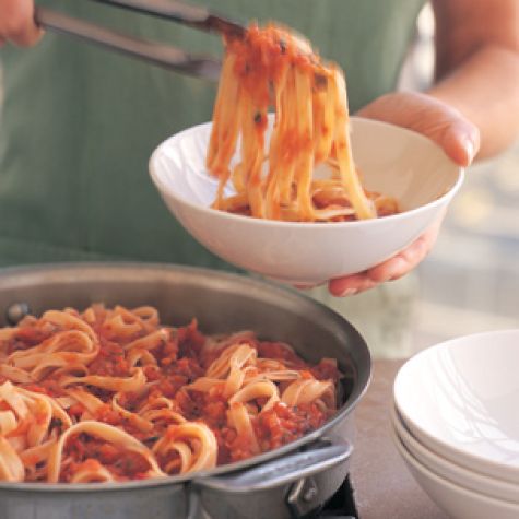 Add the pasta to the reserved 3 cups sauce and stir to combine. Add as much of the cooking water as needed to loosen the sauce and serve immediately. Serves 4; makes about 8 cups sauce total.