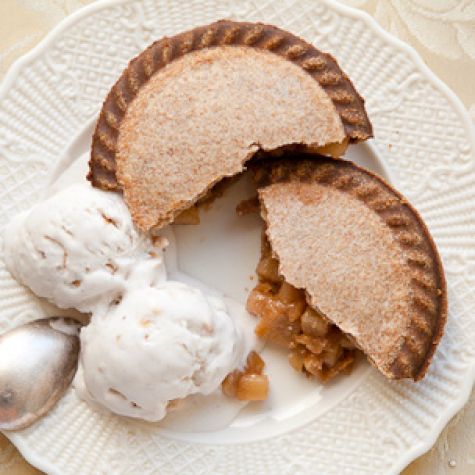 Serve each pie with a scoop of toasted almond-spice ice cream on top. Makes 8 mini pies and about 1 quart ice cream.