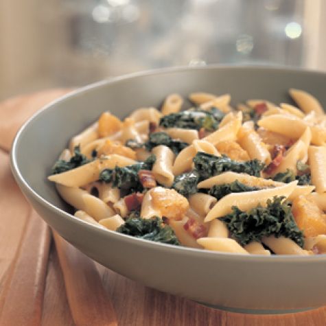 Add the squash and kale and sauté until the kale begins to wilt, about 1 minute. Add the broth, cover and cook until the squash is just tender, about 15 minutes. Uncover, increase the heat to high and bring to a boil. Cook until the broth is reduced by half, about 5 minutes more. Reduce the heat to low and stir in the cream and sage. Season with salt and pepper. To freeze the sauce, set aside to cool (see note).