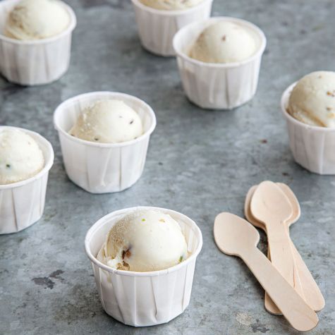 Made with a higher egg-to-cream ratio than other custard-based ice creams, gelato, a frozen treat that’s wildly popular in Italy, is dense and full flavored. To skin pistachios, place the nuts in a heatproof bowl, cover with boiling water and let stand for 2 minutes before draining the nuts and rubbing them vigorously with a towel to slip off the skins. If the nuts jam the paddle when you add them to your ice cream maker, turn the machine off and use a rubber spatula to stir in the nuts by hand.