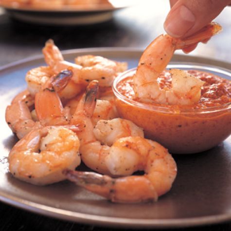 Spoon the romesco sauce into small bowls for dipping. Divide the shrimp among individual plates and serve with the sauce. Serves 4; makes about 2 1/2 cups romesco sauce total.