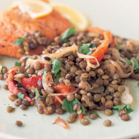 Green Lentil Salad with Red Peppers and Shallots