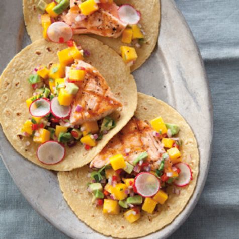Salmon Tacos with Mango-Avocado Salsa