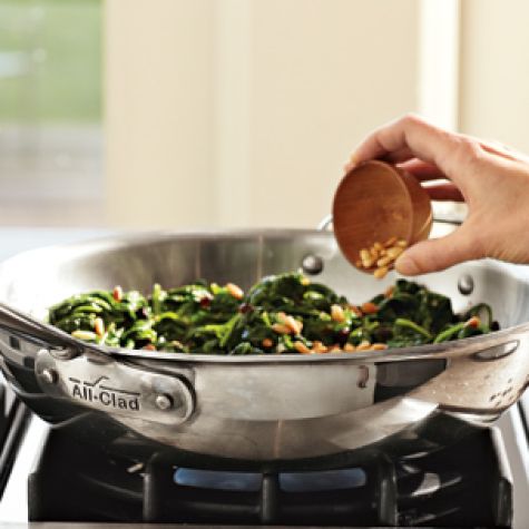 Currants and pine nuts give this simple spinach dish a Sicilian slant. It’s the perfect accompaniment for our Chicken Braised in White Wine.
