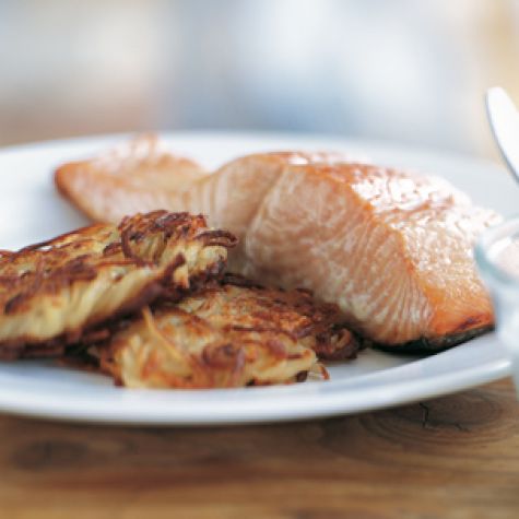 It’s easy to smoke salmon on a backyard grill. While the salmon cooks, prepare crispy potato pancakes to serve alongside.