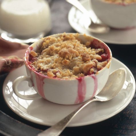 Spread the fruit filling in a 9-by-13-inch baking dish. Using your fingers, press the topping into large clumps and scatter it over the fruit. Bake until the fruit is bubbling and the topping is golden and crisp, about 1 hour. Alternatively, divide the fruit and topping among eight 1/2-cup ramekins and bake for 30 minutes. Serve warm or at room temperature. Serves 6 to 8.