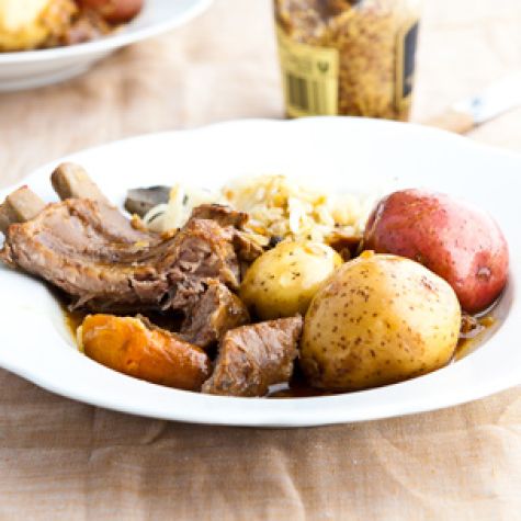 Ladle the meat and vegetables into soup bowls. Serve immediately with spicy mustard and buttered rye bread on the side. Serves 4 to 6.