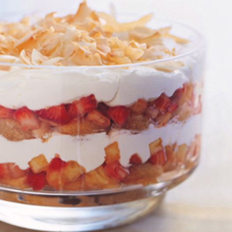 When ready to serve, sprinkle the trifle with the toasted coconut. Use a large spoon to scoop portions of the trifle onto small plates. Serves 10 to 12.