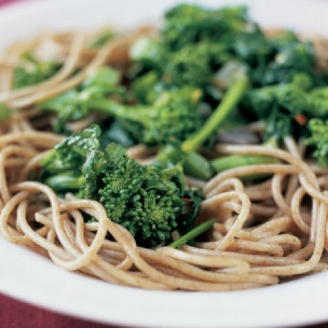 Pasta made from farro, an ancient variety of wheat, has a nutty flavor that goes perfectly with the broccoli rabe in this hearty dish. If you prefer more pungent greens, add 1/8 tsp. red pepper flakes with the garlic.