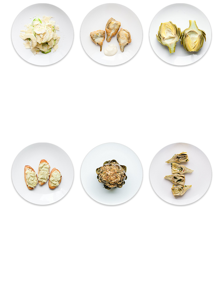 Toss artichoke slices with olive oil, lemon juice, shaved Parmesan, salt and pepper.