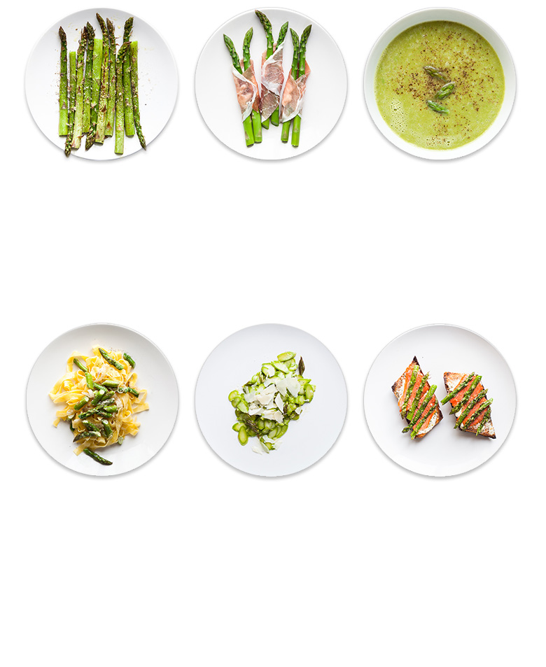 Bend the stalks until they snap at their natural breaking point, or trim to similar lengths and use a vegetable peeler to get rid of the thick, fibrous end. Steam or boil fresh spears vertically in an asparagus steamer or horizontally in a large fry pan (not a crowded saucepan) and serve hot, topped with melted butter and a squeeze of lemon juice, or cold, dressed with vinaigrette. Asparagus can also be coated with olive oil and roasted at a high temperature or grilled. Slender spears are good sautéed in a bit of olive oil or butter and tossed with pasta; stockier spears are great additions to soups and stews.