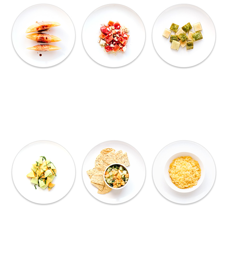 Ripe melons have a strong, sweet fragrance and give slightly when pressed at both ends. A fully ripe melon may have tiny cracks at the stem end. Choose melons that are heavy for their size and free of deep blemishes, shriveled peel or soft, moldy areas. Look for a large, pale yellow (but not white, soft or moldy) patch on one side of a watermelon, indicating it was left on the vine to ripen and is likely to be sweeter. For the juiciest ones, knock on the melon and listen for a deep resonance.
