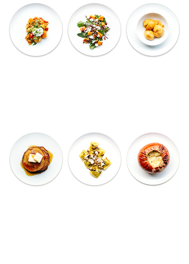 Puree roasted pumpkin with an egg yolk, grated parmesan, grated nutmeg, salt and pepper. Roll out sheets of fresh egg pasta and fill with pumpkin mixture to form ravioli.