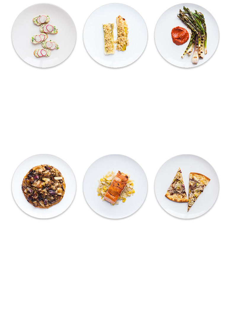 The tops of spring onions and baby leeks should be bright green and firm, not wilted. The bulb ends of leeks and ramps should be white and shiny. Avoid dried roots or wet bulbs.