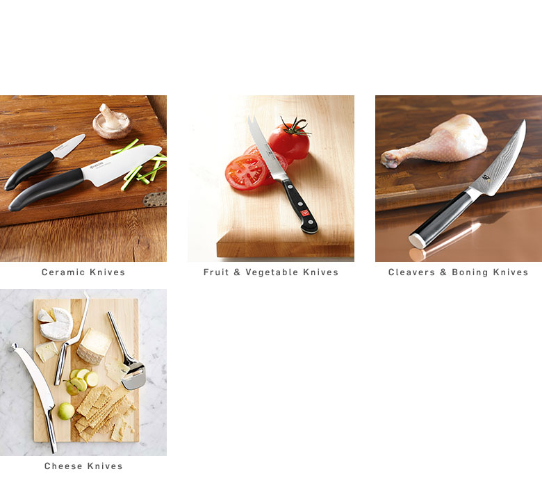 Choose the right knives for the taskUsing the proper knife for the job helps ensure the best results. Our sets include the most frequently used knives, each designed for a particular culinary task, as well as wooden blocks, racks and indrawer organizers for easy storage.