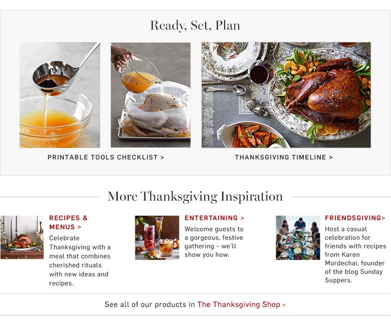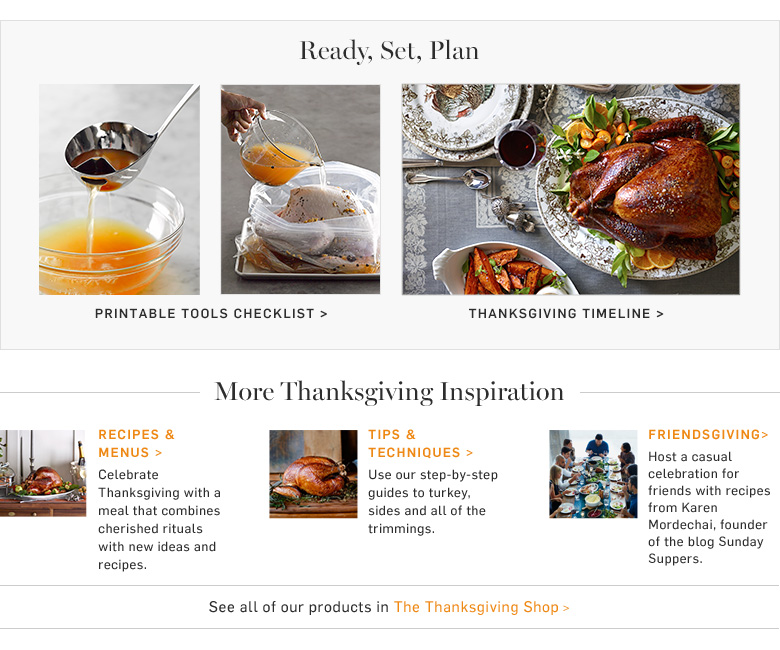 Printable Tools Checklist Thanksgiving Timeline Recipe & Menus Tips & Techniques Friendsgiving See all of our products in the Thanksgiving Shop