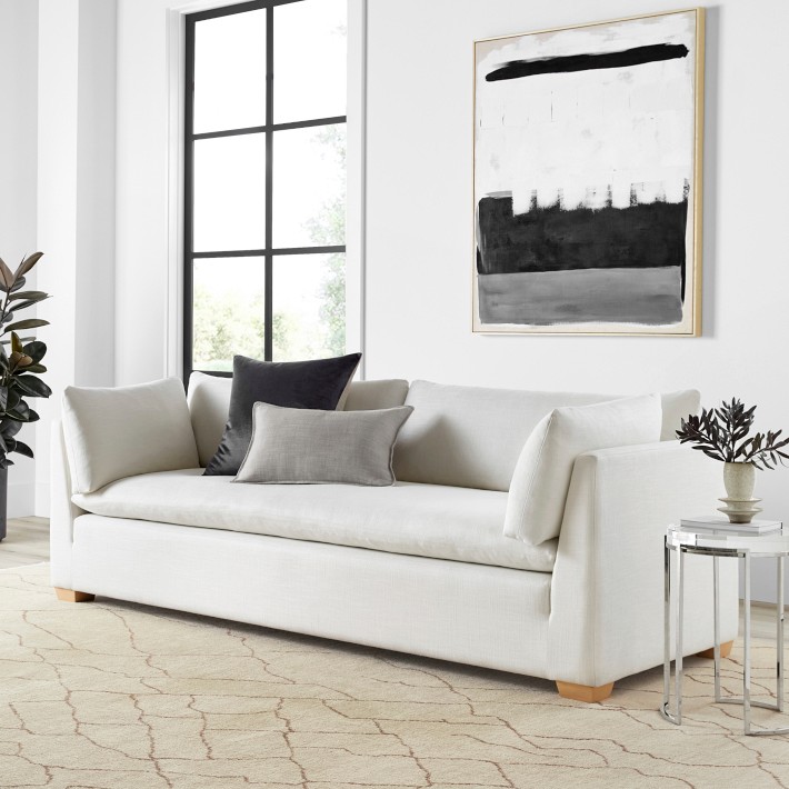 - Lofty knife-edge seat cushions feature double needle stitch detail.