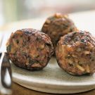 Greek mezes include both warm dishes and cold spreads, dips and salads. Miniature meatballs called keftedes are one of the most popular of these small plates. This version blends walnuts and rice with ground beef and lamb. The mixture allows the assertive flavor of the lamb to come through while keeping the dish leaner than usual. Tzatziki makes a delicious accompaniment.