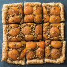 Spread the apricot preserves evenly over the bottom of the tart shell. Sprinkle the cinnamon, cardamom and 4 Tbs. (1 oz./30 g) of the pistachios over the preserves. Arrange the apricots, cut sides down, on top and drizzle with any juices remaining in the bowl. Sprinkle the remaining 2 Tbs. pistachios over the top.