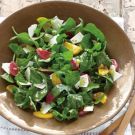 Divide the salad among individual plates. Using a vegetable peeler, shave the ricotta salata over the salads. Serve immediately. Serves 4.
