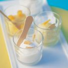 To serve, place a miniature ice cream parlor spoon or demitasse spoon in each glass. Garnish each serving with a few pieces of fruit. Arrange on 1 or 2 trays. Makes 42 shots; serves 10 to 12.